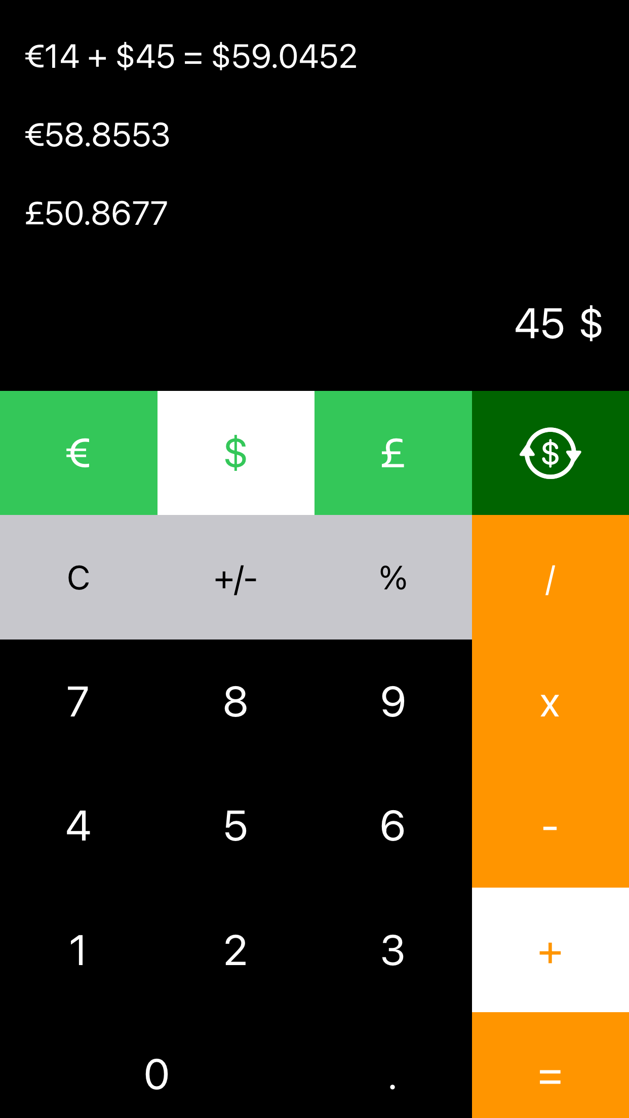 You may use calculatorX as your daily calculator, it provides currency operators as addition.